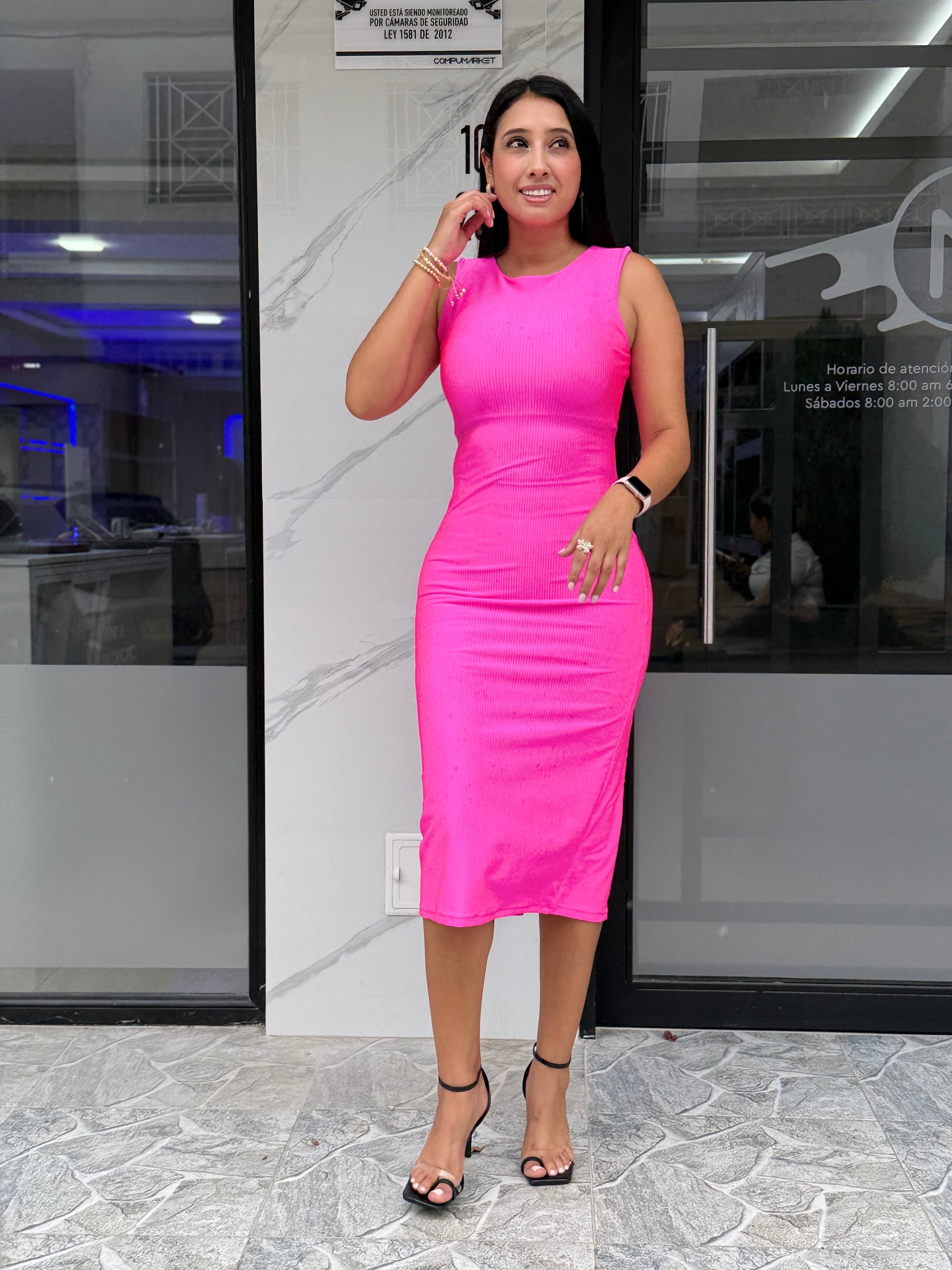 Vestido para combinar con cualquier prenda, luce bella y sin complicaciones. Elaborado licra acanalada de la mejor calidad. tiene abertura en la parte porterior para mejor comodidad al desplazamiento.